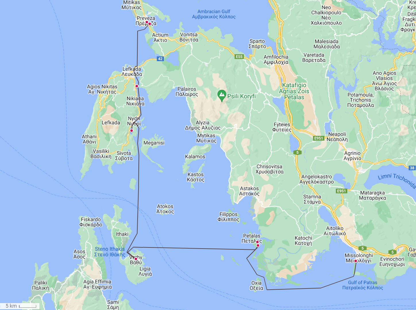 We stayed in an anchorage on our way over to Messolonghi in the Gulf of Patras. The entrance is through a narrow buoyed channel which widens to a large lagoon several miles inland, where we will probably stay at anchor for 5 or 6 nights. Messolonghi town is quite a long walk from the lagoon.