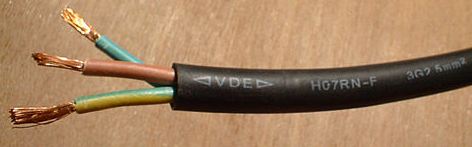 New wiring required 6 metres of 3-core 2.5mm² heavy duty mains cable. I purchased H07RN-F grade as this is suitable for a marine environment. The Neoprene coating is extremely tough, flexible, weatherproof and resistant to oil. It has an overall diameter of 11.5mm and can handle 4.5kW when used between -25°C to 85°C.