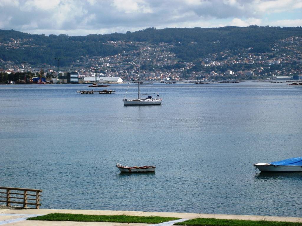 We spent six nights at anchor in Baiona, during which time the weather was pretty mixed, with sun, rain and wind and the fog rolling in and out. When we eventually decided to leave, we waited until the sky was blue and headed out of the bay, trying to stay ahead of the rain, which we could see coming towards us. Fortunately we managed to outrun it and motored across the Ria to anchor in a lovely little bay for lunch, and then continued up to Moaña, on the north side of the Ria, directly opposite Vigo. We anchored in the bay just outside the marina, near Eromaducs, whom we hadn’t seen since leaving O Grove in Ria de Arousa, about four weeks ago. It was lovely to see them again before they headed south to Nazaré in Portugal, where they stay for the winter.