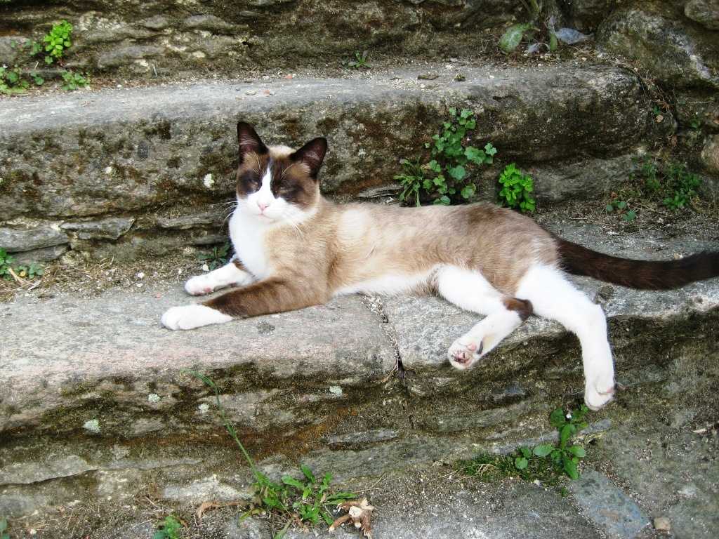 While in the marina, Mike carried out a minor fibreglass repair to the bow, where the anchor tip had hit the hull when he was raising it. It’s a vast improvement but he’s still to wet ‘n dry it at some future marina. We wandered around the town and visited old ruined defences where we came across a very friendly cat, the first one we’ve spoken to since leaving home and he followed us around for quite a while. Some marina berths here were festooned with permanent fenders. Assumed that the owners were very bad at boat handling and kept well clear of them.