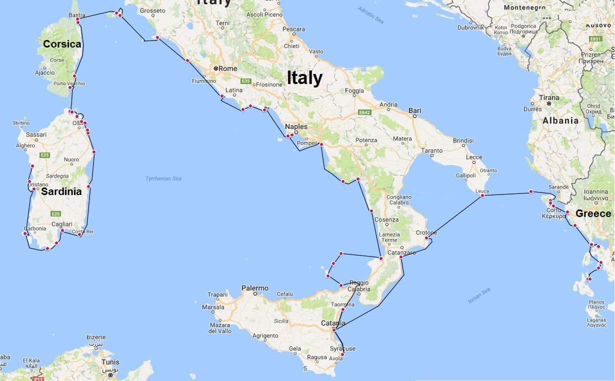 Preveza is in an inland sea which extends for about 20nm, so we motored and then managed to sail down to Vonitsa on the south coast of the gulf. This is a very popular tourist resort for the Greeks. We found a lovely anchorage behind an island and had a very peaceful night. When we left the following morning there was a nice breeze for sailing, but as soon as we put the sails up the wind died and we were back on the engine.