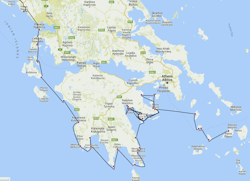 We've been trying to head northeast, across to the Northern Sporades, but the wind in that area has consistently been 35-40kts, so rather than waiting in Poros hoping the wind would ease, we decided to revisit some places. We had some excellent sails over the next couple of weeks, returning to Porto Heli for a couple of days and then back to Poros.
